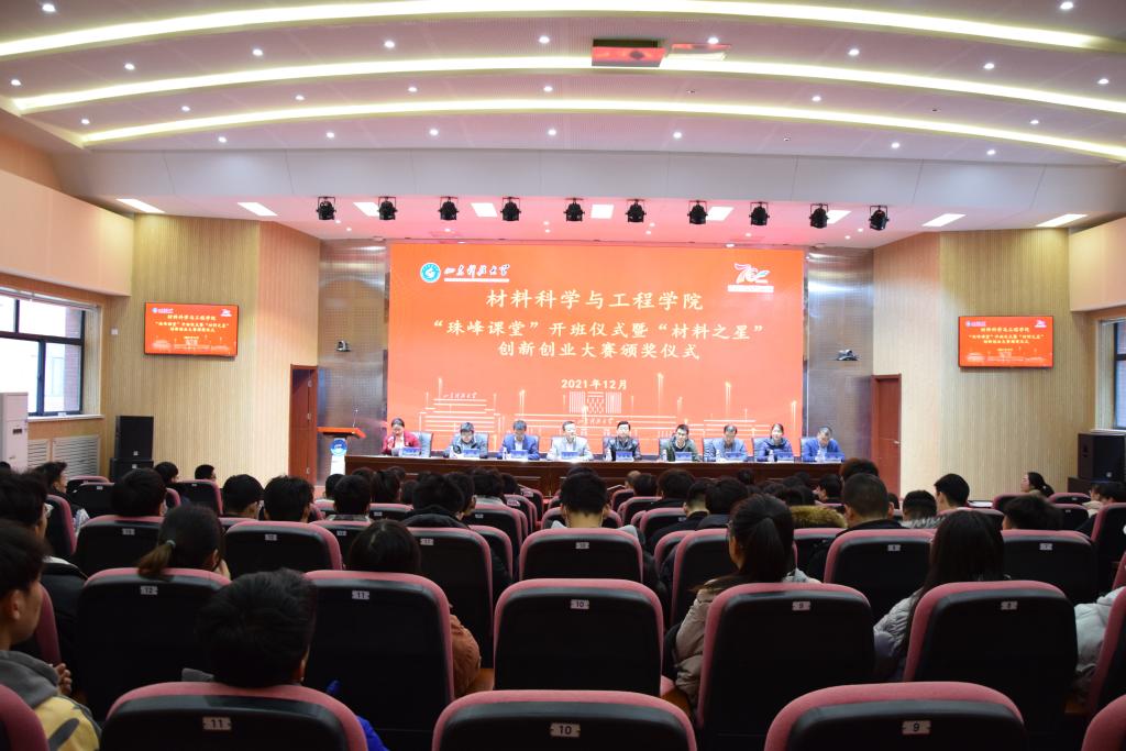 12月10日上午,买球官网在J9-144报告厅成功举办“珠峰课堂”开班仪式暨“材料之星”创新创业大赛颁奖仪式。徕卡显微系统(上海)贸易有限公司经理姜展军、韩佳佳,青岛富斯林化工科技有限公司研发经理武军,学生工作处副处长靳凯、团委副书记马鹤、创新创业学院副院长杨彬,买球官网党委副书记兼副院长李建楠、副院长宋强、副院长田健及学院各系(中心)教师代表、获奖师生代表、2021级部分同学参加了本次仪式。仪式由学院团委书记马韶霞主持。